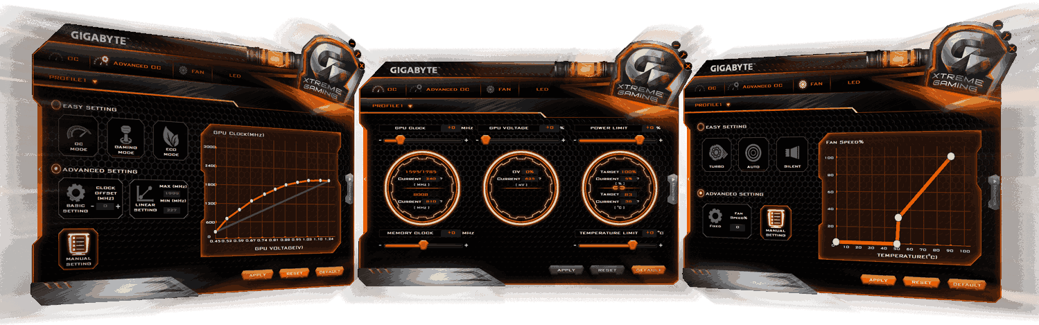 This graphics card featuted with Clock speeds - Boost: 1430 MHz / Base: 1316 MHz in OC modeBoost: 1392 MHz / Base: 1290 MHz in Gaming mode, voltage, fan performance, power target, that can be monitored and tuned in real-time according to your own preference through this intuitive interface.