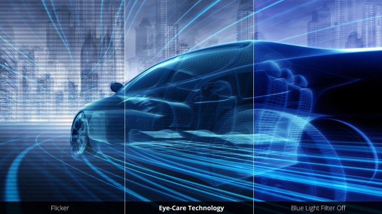 Flicker-Free technology and a Blue Light Filter help to eliminate eye strain from extended viewing periods.